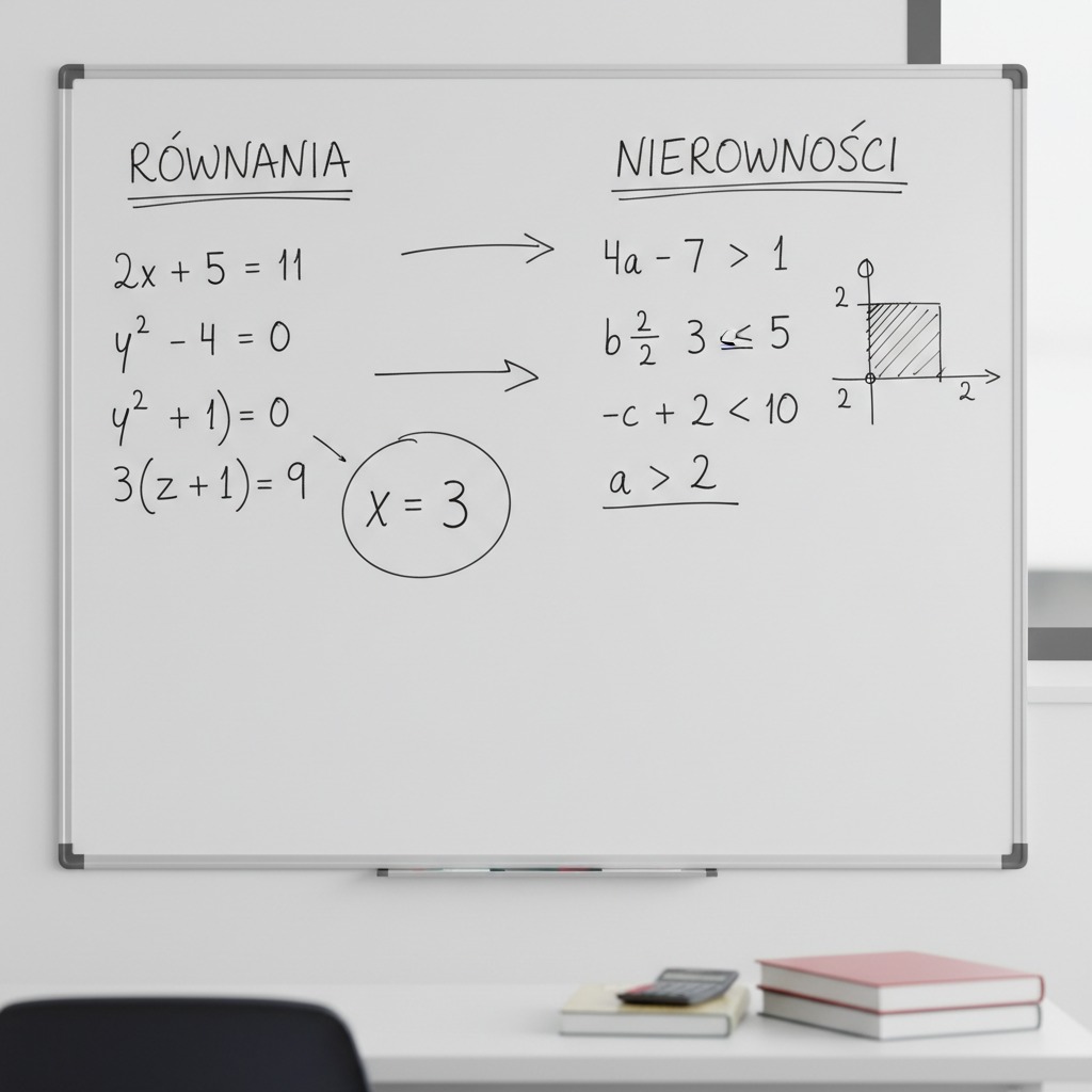 Równania i nierówności liniowe oraz kwadratowe, a także układy równań